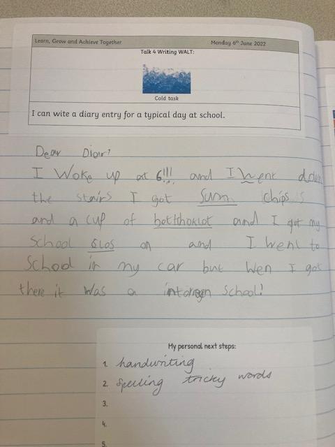 All work is marked in accordance with the school’s marking policy. Positive elements of work, demonstrating progress towards the learning objectives is highlighted and celebrated. Next steps and areas to build upon are made clear to pupils in teacher conferencing and during live marking and are highlighted in their books.